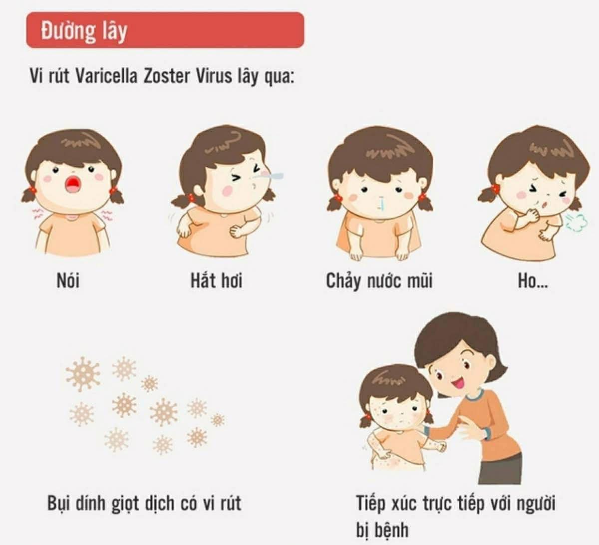 – Bệnh lây truyền chủ yếu qua đường hô hấp (giọt bắn khi người bệnh ho, hắt hơi) hoặc tiếp xúc trực tiếp với dịch từ các nốt phỏng.