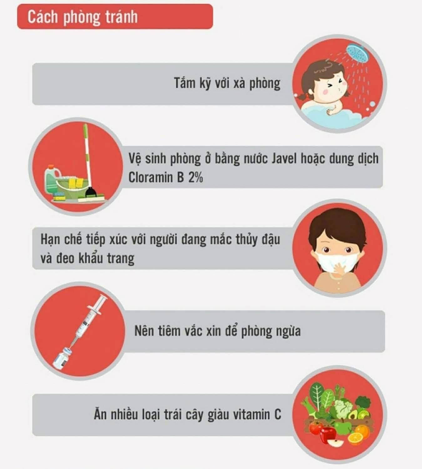 – Tiêm vắc xin phòng thủy đậu đầy đủ, đúng lịch là biện pháp phòng bệnh hiệu quả nhất.